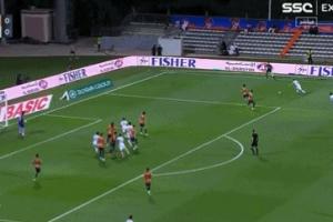 第40分鐘,達(dá)馬克球員斯坦丘轟入一記精彩世界波。