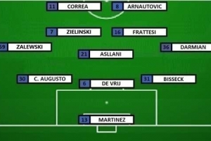 在這份名單中,替補(bǔ)門將何塞普-馬丁內(nèi)斯頂替索默,阿切爾比、巴斯托尼、迪馬爾科、鄧弗里斯以及主力中場(chǎng)全都替補(bǔ)休息,勞塔羅因傷缺陣,恰爾汗奧盧因停賽無法出戰(zhàn)。