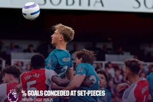 據(jù)Opta統(tǒng)計,阿森納本賽季英超38.7%的失球來自于定位球,本賽季英超球隊定位球失球占比最高。