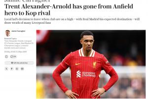 隨著周一的聲明,亞歷山大-阿諾德在完全致力于利物浦時從Kop享受到的無條件支持已經(jīng)消失。
