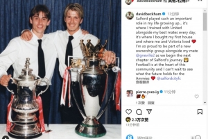 貝克漢姆社媒曬出與內(nèi)維爾的昔日合照,并寫道:“索爾福德在我的成長過程中扮演了非常重要的角色,這里是我每天與最好的伙伴一起訓(xùn)練的地方,是我買第一套房子的地方,也是我與維多利亞一起生活的地方??我很自豪能與我的朋友內(nèi)維爾一起成為新的所有權(quán)集團(tuán)的一員,開啟索爾福德旅程的下一篇章??足球是這個社區(qū)的核心,我迫不及待想看到索爾福德城未來的發(fā)展?!?/p>