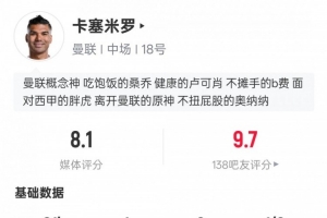 體育資訊5月9日訊 歐聯(lián)杯半決賽次回合,曼聯(lián)4-1畢爾巴鄂競(jìng)技??ㄈ琢_首發(fā)出戰(zhàn),貢獻(xiàn)1粒進(jìn)球,送出7次搶斷,還有3次解圍,評(píng)分8.1。