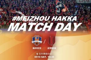 目前中超積分榜上,梅州客家3勝3平5負積12分,位列第10;成都蓉城8勝2平1負積26分,位列第2。