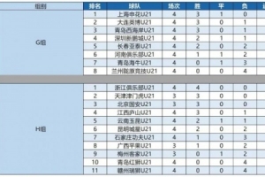 體育資訊5月16日訊 目前在U21聯(lián)賽預賽第一階段,申花U21和浙江U21分別在G組、H組位居榜首,打入9個進球的浙江U21球員周文濤領跑射手榜。