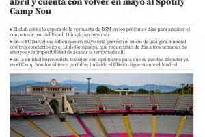 體育資訊1月13日訊 《世界體育報(bào)》報(bào)道,巴薩正尋求將蒙錐克體育場(chǎng)的使用期限從3月底延長(zhǎng)至4月底,同時(shí)預(yù)計(jì)最遲在5月重返諾坎普主場(chǎng)。