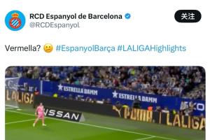 西班牙人官方曬出了卡夫雷拉與亞馬爾的拼搶過程,并配文字質(zhì)疑:“紅牌???”。