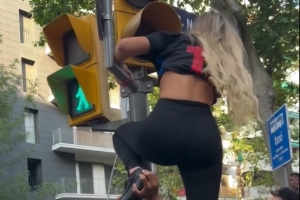 游行時,拉菲尼亞的妻子娜塔莉亞更新社媒曬出一段視頻,自己在其他人幫助下想爬上紅綠燈但失敗了。