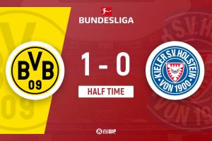 半場戰(zhàn)罷,多特暫1-0荷爾斯泰因基爾。