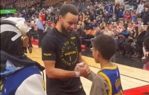 賽前庫里進(jìn)行了投籃熱身,隨后他來到場邊為眾多小球迷簽名,人氣之高可見一斑。