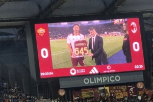 羅馬36歲中衛(wèi)胡梅爾斯將在本賽季結(jié)束后退役,此役賽前羅馬向他頒發(fā)職業(yè)生涯出戰(zhàn)645場(chǎng)俱樂(lè)部比賽紀(jì)念球衣。
