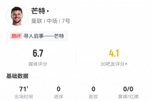 體育資訊5月22日訊 正在進(jìn)行的歐聯(lián)杯決賽,曼聯(lián)0-1熱刺。此役芒特首發(fā)71分鐘被換下,球員全場重點(diǎn)數(shù)據(jù)如下↓