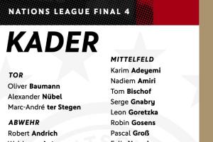 體育資訊05月22日訊 德國(guó)公布本期歐國(guó)聯(lián)大名單,其中維爾茨、薩內(nèi)、格納布里入選,穆西亞拉缺席。德國(guó)隊(duì)將在歐國(guó)聯(lián)半決賽對(duì)陣葡萄牙。