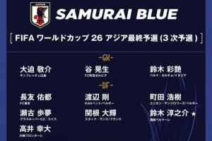 此外,本次日本隊(duì)共招入了7名新人,分別是:鈴木淳之介(湘南海洋)、平河悠(布里斯托爾城)、熊坂光希(柏太陽(yáng)神)、三戶(hù)舜介(鹿特丹斯巴達(dá))、佐野航大(奈梅亨)、俵積田晃太(東京FC)和佐藤龍之介(岡山綠雉)。