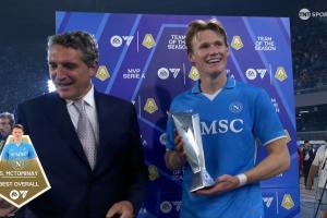體育資訊05月24日訊 意甲第38輪,那不勒斯2-0擊敗卡利亞里,鎖定意甲冠軍。上半場麥克托米奈打入凌空側(cè)鉤,幫助球隊先開紀(jì)錄,同時也成功當(dāng)選本賽季意甲MVP。