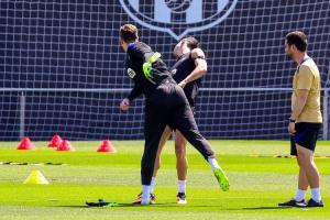 體育資訊05月24日訊 巴薩將在5月26日迎來(lái)本賽季最后一場(chǎng)比賽,客場(chǎng)對(duì)陣對(duì)陣畢爾巴鄂競(jìng)技。在今日巴薩的訓(xùn)練中,萊萬(wàn)和什琴斯尼進(jìn)行了“友好”的互動(dòng)。