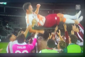 胡梅爾斯本賽季結(jié)束后退役,此役是他的告別戰(zhàn),賽后隊友們拋起這位36歲的德國中衛(wèi),與他告別。