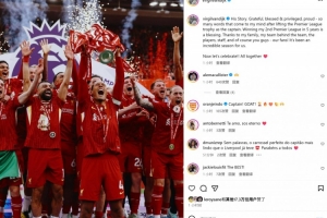 范迪克在個(gè)人社媒也曬出與眾隊(duì)友慶祝照片,配文寫(xiě)道:“他的故事,感恩、幸福、榮幸、自豪,作為隊(duì)長(zhǎng)捧起英超冠軍獎(jiǎng)杯后,我的腦海里涌現(xiàn)出無(wú)數(shù)的詞語(yǔ)。五年內(nèi)第二次贏(yíng)得英超冠軍是一種幸福。感謝我的家人,感謝球隊(duì)背后的團(tuán)隊(duì),感謝隊(duì)友、工作人員,當(dāng)然還有我們的球迷們!這對(duì)我們來(lái)說(shuō)是一個(gè)不可思議的賽季。 現(xiàn)在,讓我們一起慶祝吧!”