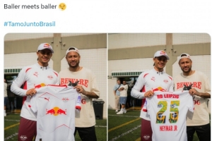 北京時間明天早晨,萊比錫將在友誼賽中對陣桑托斯,萊比錫攻擊手哈維-西蒙斯與內馬爾賽前見面,哈維-西蒙斯將萊比錫球衣贈送給這位巴西球星,球衣上面印有內馬爾的名字。