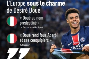 體育資訊6月1日訊 歐冠決賽巴黎5-0大勝國際米蘭,隊史首次奪得歐冠冠軍!19歲的巴黎新星杜埃2射1傳閃耀全場,賽后,《隊報》判點了歐洲各大媒體盛贊恩里克及杜埃的評論。