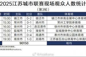 2025江蘇城市聯(lián)賽現(xiàn)場觀眾人數(shù)統(tǒng)計 (第3輪)