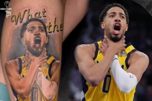 體育資訊6月3日訊 據(jù)研究NBA紋身自媒體inkednba報(bào)道,一位步行者球迷在小腿上紋了哈利伯頓扼喉慶祝動作的紋身。