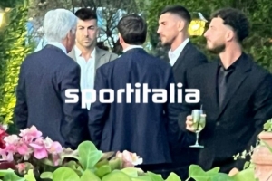 婚禮儀式結(jié)束后,賓客移步至圣喬治莊園。記者捕捉到關(guān)鍵畫面,加斯佩里尼與兩位羅馬球員長談,這張合影成為他即將執(zhí)掌紅狼帥印的首次非正式會晤見證。