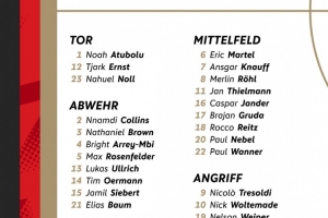 后衛(wèi):柯林斯(法蘭克福)、布朗(法蘭克福)、阿雷姆比(布拉加)、羅森菲爾德(弗賴堡)、盧卡斯-烏爾里希(門興)、厄爾曼(波鴻)、希伯特(杜塞爾多夫)、伊萊亞斯-鮑姆(埃弗斯堡)