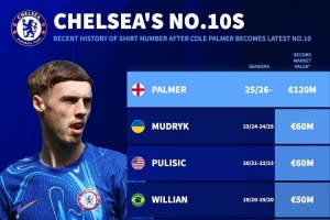體育資訊6月5日訊 切爾西官方宣布,帕爾默新賽季將身穿10號球衣。