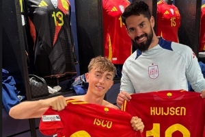 此役伊斯科擔(dān)任西班牙替補,沒有出場,懷森社媒曬出與伊斯科交換球衣的照片,以及兩人的聊天記錄,2017年伊斯科曾祝懷森生日快樂,懷森配文:“2017年-2025年?!?/p>