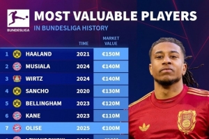 德甲球員德轉(zhuǎn)歷史身價(jià)榜: