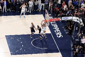 首輪G4,掘金客場(chǎng)101-99快船,戈登在最后時(shí)刻完成驚天壓哨補(bǔ)扣絕殺。