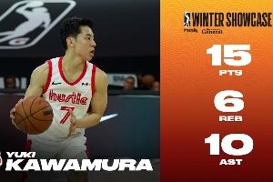 本場(chǎng)比賽,河村勇輝17投5中,其中三分7中0,另外罰球4中3(G聯(lián)賽罰球視情況在1-3分),得到15分6籃板10助攻1搶斷。
