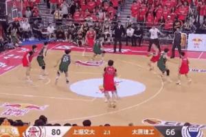 比賽最后時(shí)刻,上交吳澤昊在三人補(bǔ)防下,中距離飄逸后仰,完成壓哨絕殺!
