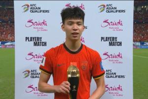 體育資訊06月10日訊 世預(yù)賽亞洲區(qū)第三階段C組第10輪,中國(guó)男足1-0擊敗巴林。賽后現(xiàn)場(chǎng)廣播宣布,點(diǎn)射打入絕殺球的王鈺棟當(dāng)選全場(chǎng)最佳球員!