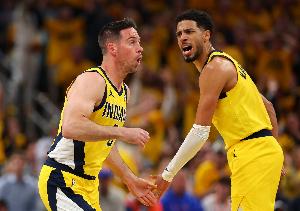 體育資訊6月12日訊 NBA總決賽G3,步行者半場64-60領先雷霆。