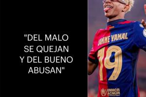 其中有一張亞馬爾反戴帽子的照片,此外還有一張照片只是一句話:他們抱怨壞的,辱罵好的。