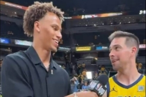 賽后,本賽季搶斷王戴森-丹尼爾斯采訪了本場送出5次搶斷的步行者球員麥康納。