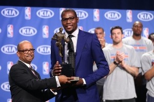 雷霆是杜蘭特巨星之路起步的地方,2007年NBA選秀,杜蘭特在首輪第2順位被超音速(現(xiàn)雷霆)選中,從此開啟職業(yè)生涯。在雷霆,KD第一年就斬獲年度最佳新秀,之后7次入選全明星(2010-2016)、一次拿到全明星MVP(2012)、一次拿到常規(guī)賽MVP(2014),4次斬獲得分王(2010-2012、2014),5次入選一陣(2010-2014),1次入選二陣(2016)。