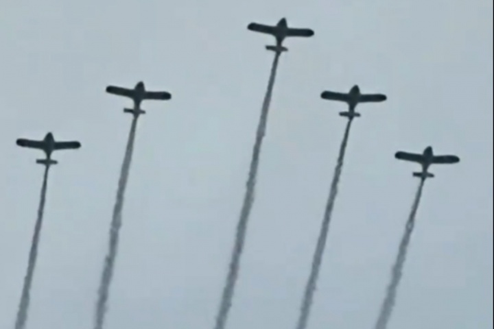 飛躍賽場的高度嚴格遵守了法律法規(guī),但遺憾的是,因為其中一架飛機擔負拍攝任務,所以在地面上看來不夠整齊,有點遺憾。