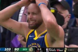 末節(jié)最后時(shí)刻,已經(jīng)確定奪冠的庫里情緒激動(dòng),造就了“庫里在哪?庫里已經(jīng)飽含熱淚”的經(jīng)典一幕;
