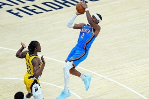 體育資訊6月17日訊 NBA總決賽G5,雷霆半場(chǎng)59-45領(lǐng)先步行者。