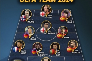 體育資訊1月16日訊 IFFHS(國際足球歷史和統(tǒng)計聯(lián)合會)公布歐足聯(lián)年度最佳陣容,貝林厄姆、羅德里在列,哈蘭德、凱恩、亞馬爾三叉戟。