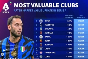 意甲球隊(duì)德轉(zhuǎn)身價(jià)排行: