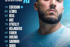 曼城首發(fā):31-埃德森、6-阿克、22-雷斯、82-里科-劉易斯、4-賴因德斯、11-多庫(kù)、26-薩維尼奧、29-謝爾基、47-福登、75-奧賴?yán)?-馬爾穆什
