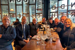 在維拉對(duì)陣埃弗頓比賽之前,威廉王子在當(dāng)?shù)匕l(fā)表完演講,準(zhǔn)備坐火車回家。隨后威廉王子走進(jìn)了一家酒吧,他買了一輪酒,一邊和球迷喝著一品脫蘋果酒一邊等回家的火車。