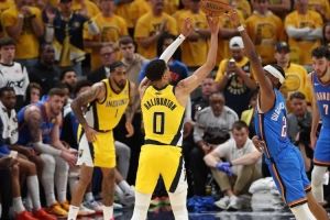 “問題出在‘包裝’上。NBA應(yīng)該讓媒體多聊聊總決賽球隊(duì),而不是整天炒作杜蘭特去哪兒、孟菲斯值不值得去。你看賽季中總有人抱怨‘三分太多沒防守’,可現(xiàn)在總決賽三分出手少了,防守強(qiáng)度拉到90年代級(jí)別,兩邊一直在肉搏,連中投都成了主流——亞歷山大和TJ-麥康奈爾靠中距離打出身價(jià),這不就是你們懷念的‘反數(shù)據(jù)分析’籃球嗎?想看純粹籃球的人,眼前就是最好的系列賽啊。”