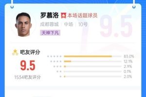 體育資訊6月20日訊 今晚進(jìn)行的足協(xié)杯1/8決賽,蓉城客場(chǎng)3-1擊敗泰山。任意球雙響破門的蓉城外援羅慕洛當(dāng)選為了此役的最佳球員。