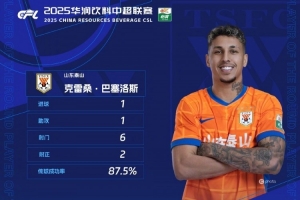 本場比賽,克雷桑先是在第22分鐘助攻澤卡破門,隨后又在第30分鐘擴(kuò)大比分。憑借克雷桑的傳射建功,泰山隊最終取得一場酣暢的大勝。