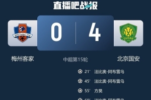 體育資訊6月25日訊 中超第15輪,憑借法比奧的帽子戲法,北京國(guó)安客場(chǎng)4-0大勝梅州客家,以10勝5平積35分的成績(jī),獲得聯(lián)賽半程冠軍。