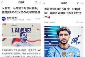 去年夏天,曼城出售阿爾瓦雷斯至馬競,轉會費為7500萬歐元+2000萬浮動,這一數字與馬爾穆什的轉會費相去不遠。